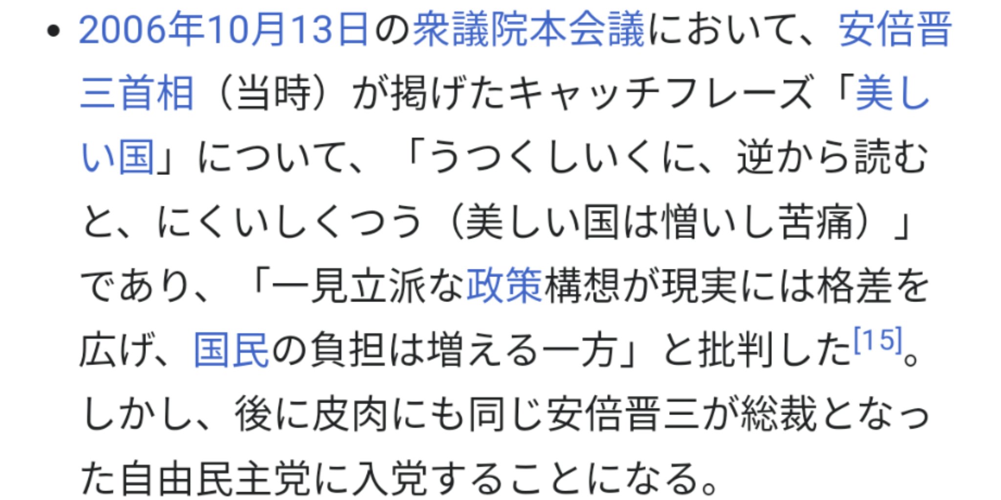 進次郎 「私は現在置かれている状況に満足していません。なぜなら現在の状況は、満足出来るような状況ではないからです」