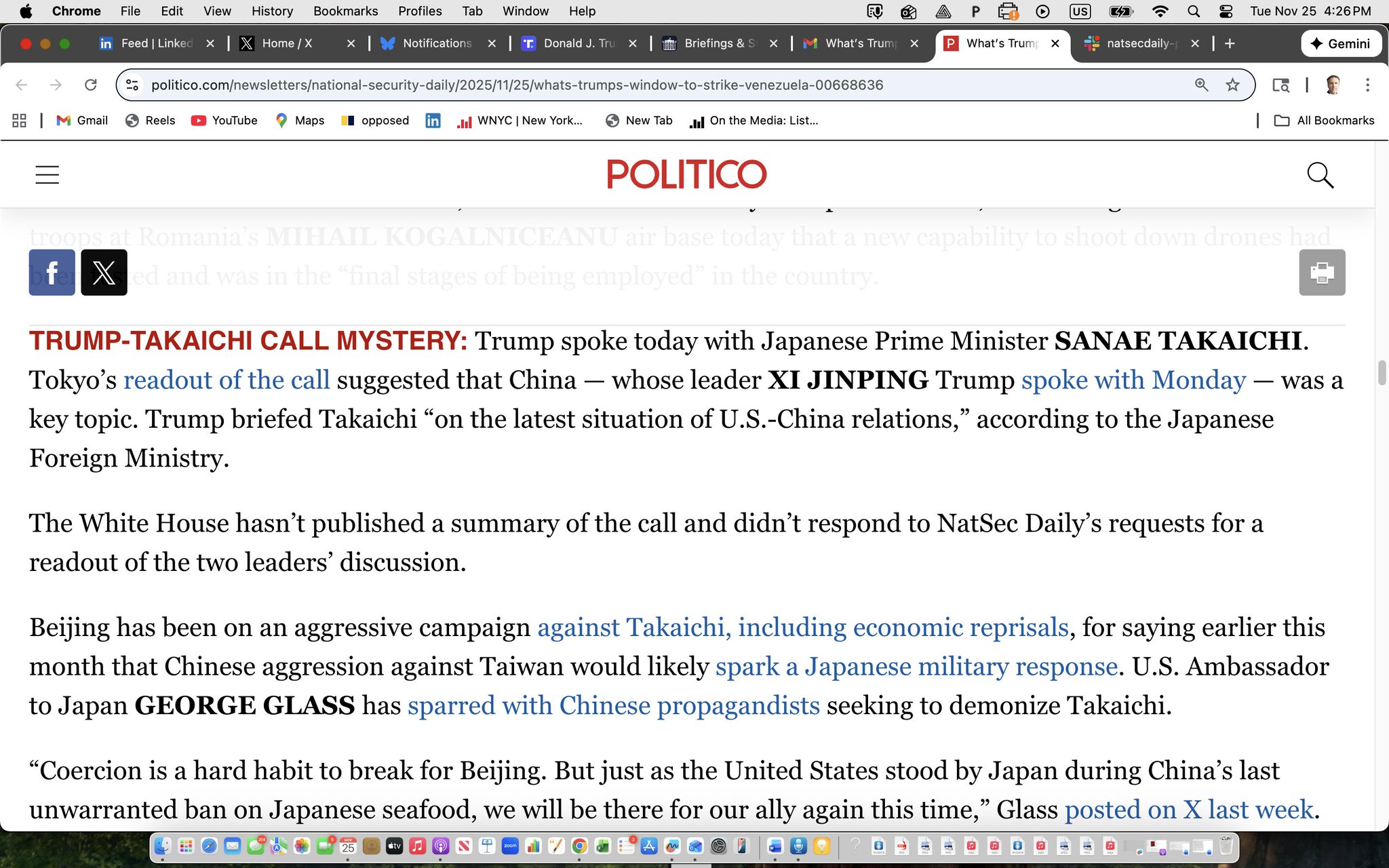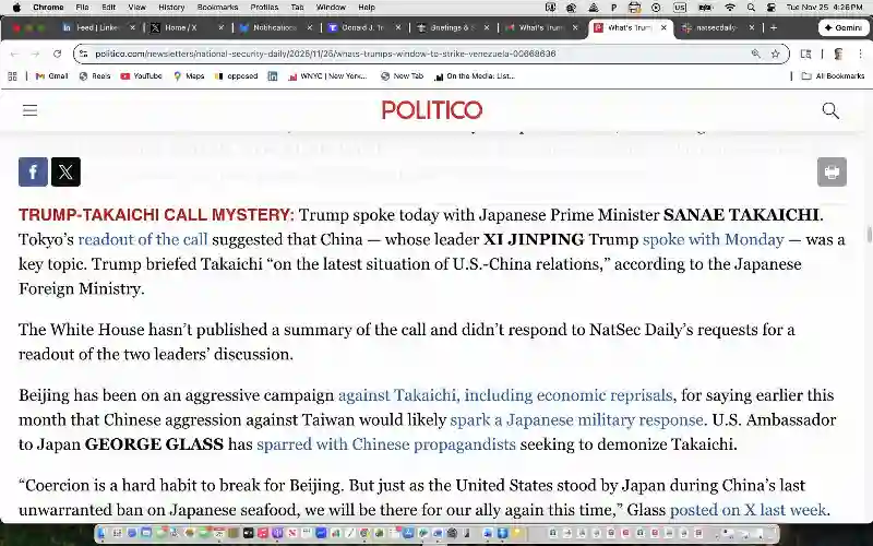 高市氏は25日、台湾有事を巡る国会答弁以降初めてトランプ氏と電話で会談した。記者団に対し「トランプ氏からは私とは極めて親しい友人であり、いつでも電話をしてきてほしいという話があった」と緊密さをアピールした