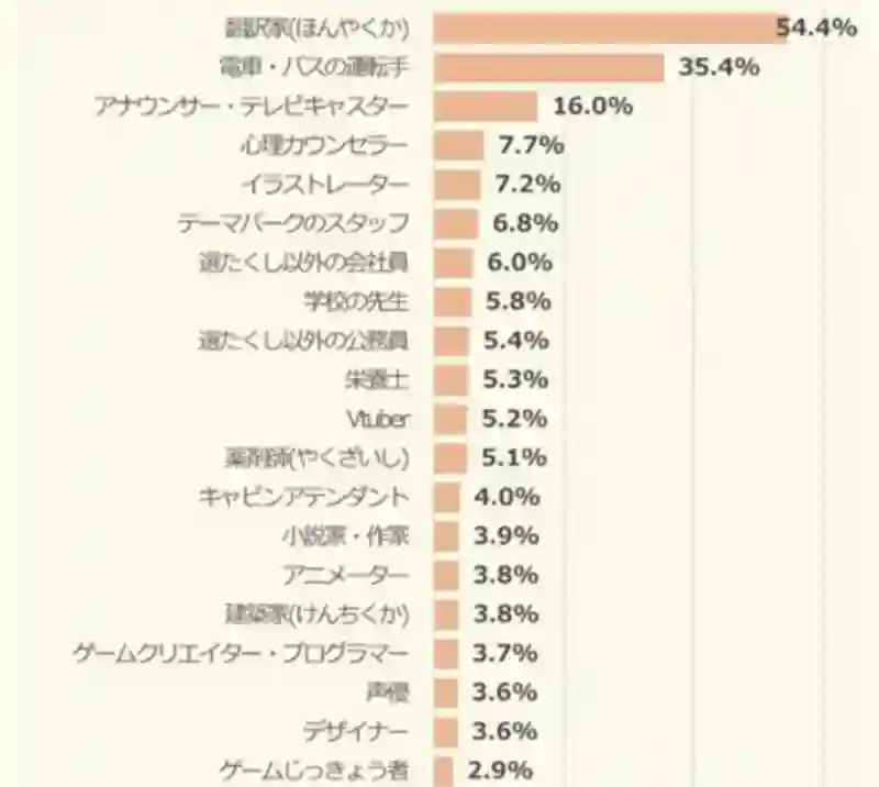 なりたい職業のトップは「イラストレーター」(6.5%)。以下「VTuber」(5.4%)、「アイドル(K-POP、J-POP)」(4.8%)、「学校の先生」(4.7%)が続いた。