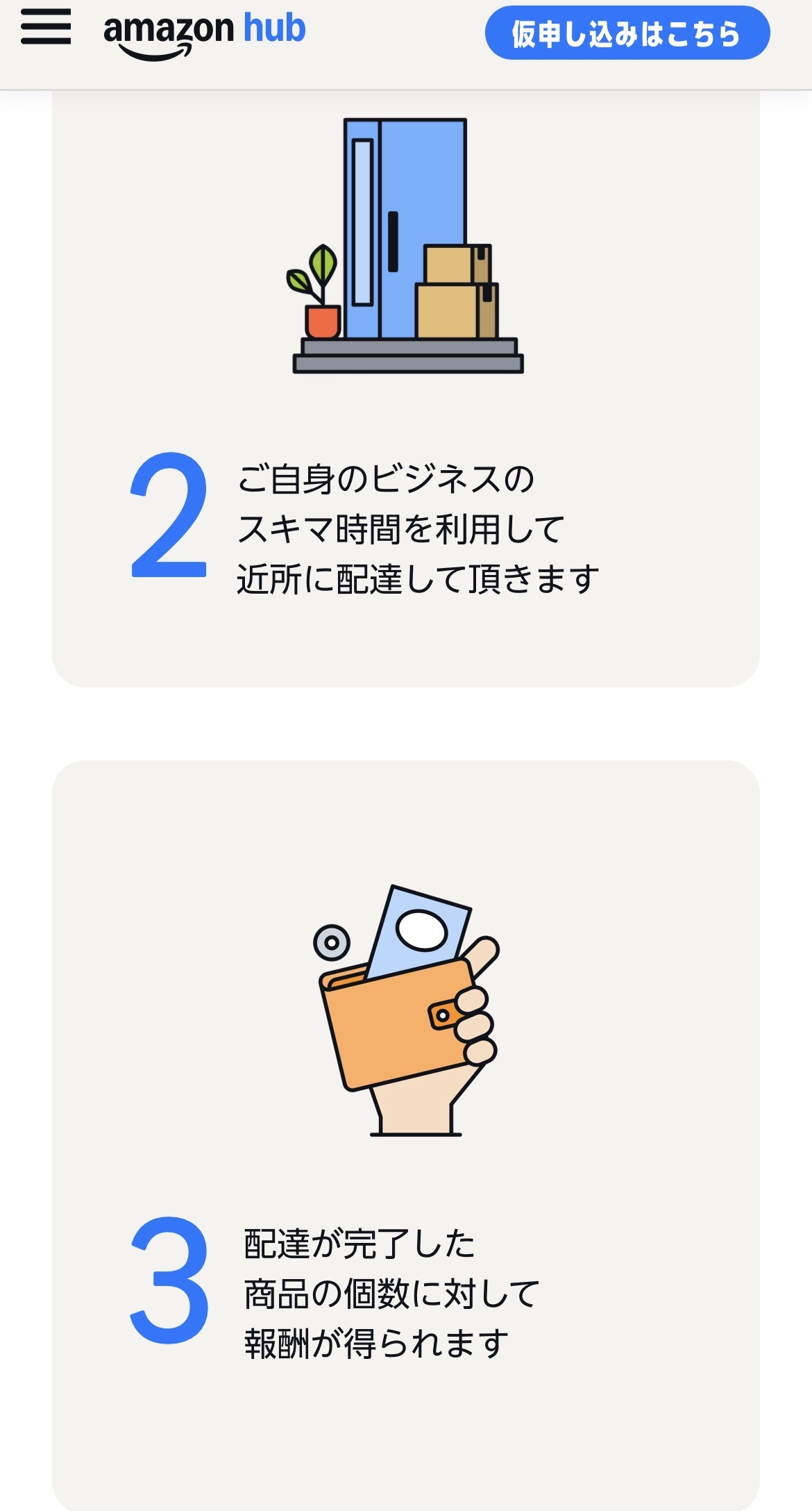 調べたらこのAmazonハブデリバリーってのは自分の住んでるとこの近くに届けるだけのジジババとか主婦の小遣い稼ぎみたいなやつぽいね